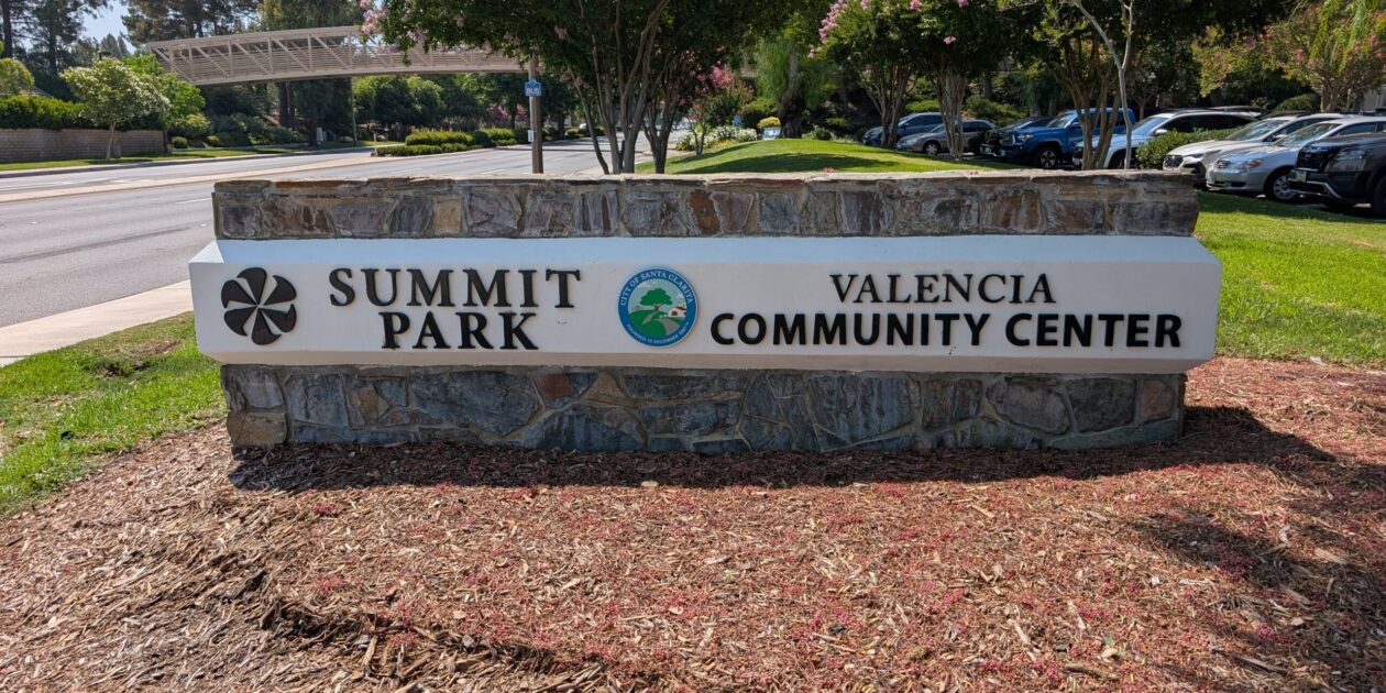 Summit Park is part of the Valencia Summit neighborhood. You can find it on McBean Parkway. The Valencia Community Center is located here as well. Summit Park offers a massive green space and lots of trees. A walking path surrounds most of the park, and also leads into the surrounding neighborhood. There is a dedicated parking lot that has a reasonable amount of parking. You can also park in the neighborhood and walk down, but it is a pretty long walk if you are going to the playground.
